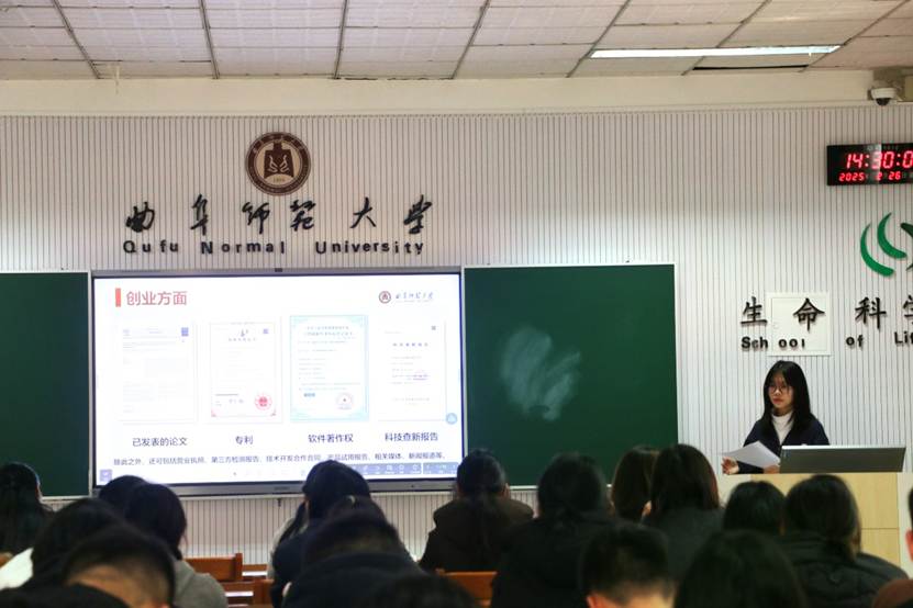 2021级施松语分享了全国大学生生命科学竞赛的参赛心得。她鼓励同学们从日常生活、专业学习和科研前沿中寻找创新灵感,并强调了团队组建的重要性,建议根据成员的专业特长和性格特点合理搭配。此外,她还详细讲解了商业计划书的撰写技巧,包括市场分析、产品定位和营销策略等关键环节,为同学们提供了实用指导。