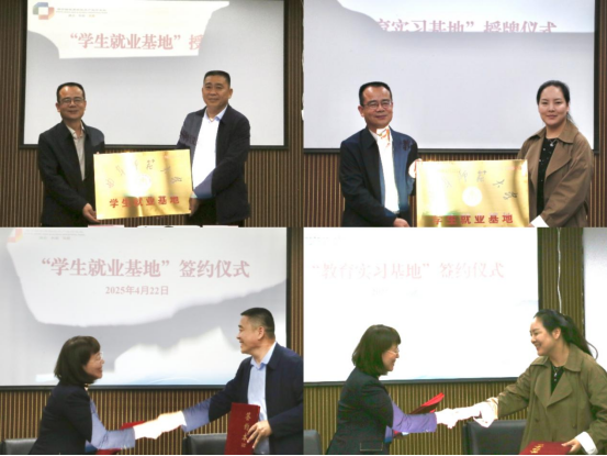 教学实习基地”合作协议。李志广为两家用人单位授牌。
