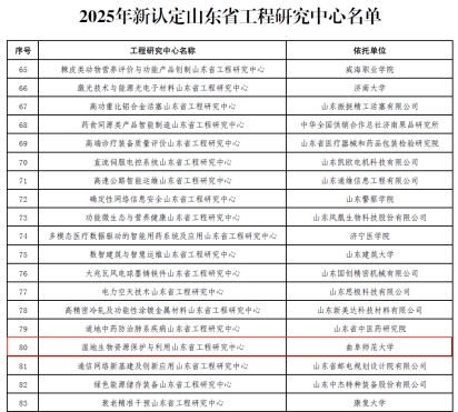 近日,山东省发展和改革委员会发布《关于公布2025年新认定及全部山东省工程研究中心名单的通知》(鲁发改高技〔2025〕575号),依托探花视频