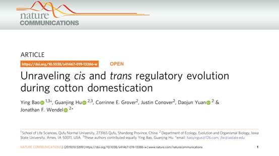 包颖教授在国际顶级期刊Nature Communications上发表了题为“Unraveling cis and trans regulatory evolution during cotton domestication(揭示棉花驯化中的顺反调控进化)”的学术论文,探花视频