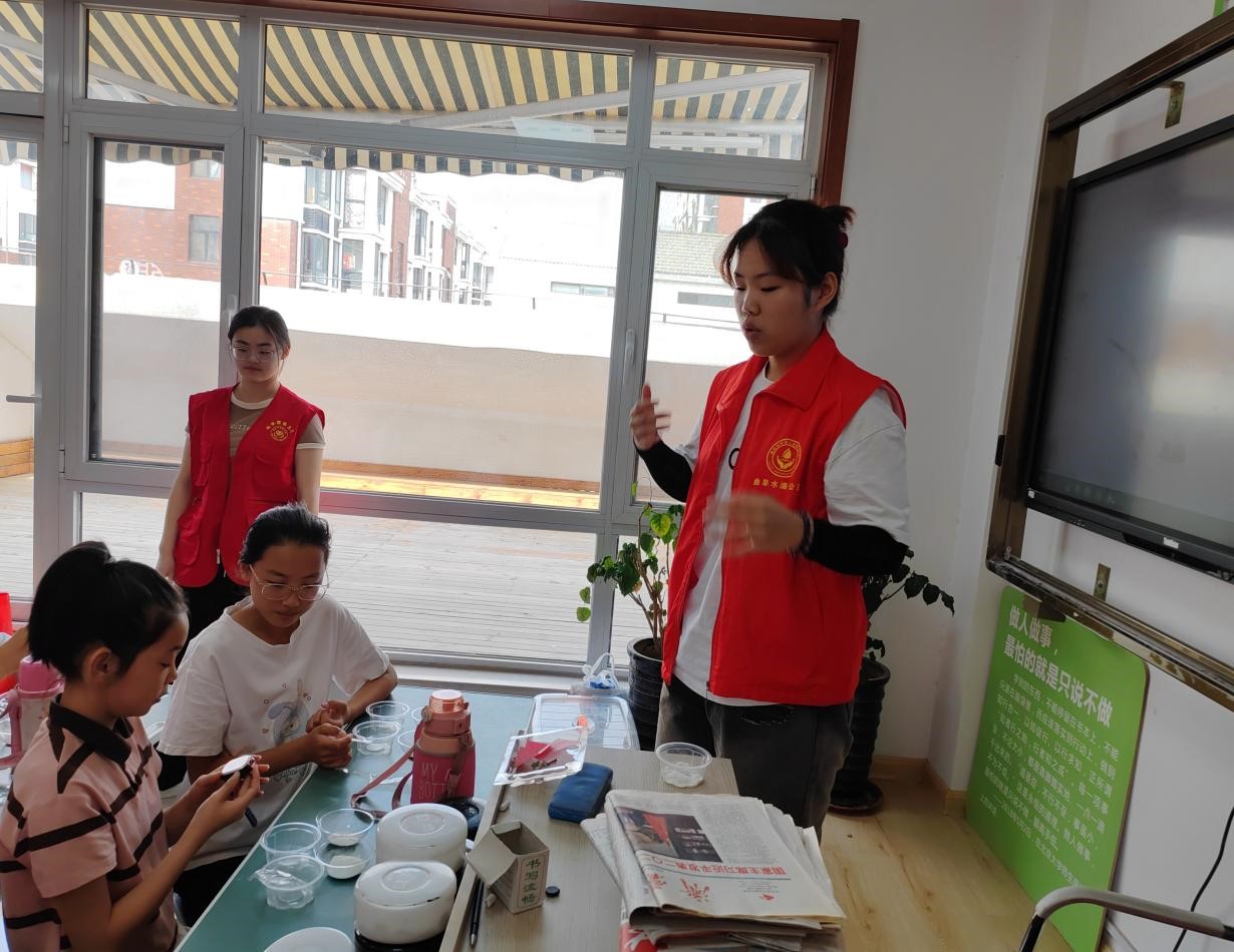 为促进儿童身心全面发展,体验动手制作的乐趣,2023级生物科学(师范M)班团支部于6月2日在阮家村社区开展六一儿童节“创意果冻diy”活动。