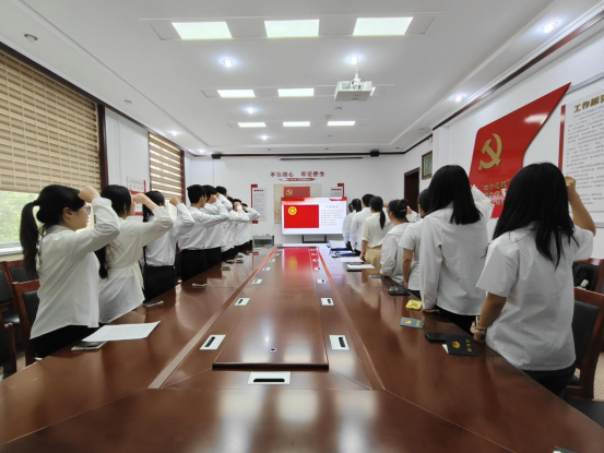团委副书记荆千雨带领全体团员宣誓。坚定的入团宣誓,激励着全体团员铭刻荣光、勇往直前,矢志不渝担当使命。团委副书记赵欣阳宣读了《团章》中有关团员义务和权利的条款,号召全体团员牢记自己的身份和使命,严格要求自己努力学习、积极工作、服务人民、奉献社会。