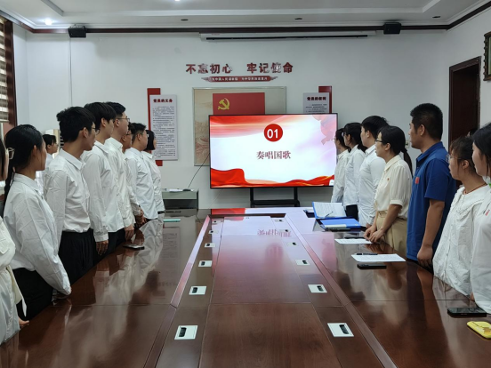 仪式在庄严的国歌声中拉开序幕,全体团员目光坚定、庄严肃穆。