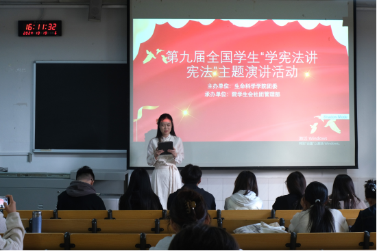宪法乃国家之基石,法治之源泉;宪法为治国之重器,安邦之根基;宪法是人民之保障,权利之护盾。宪法与我们每个人的生活息息相关。为了进一步增强大学生的宪法意识,生命科学学院团委学生会于10月19日在生物楼332教室举行第九届全国学生“学宪法讲宪法”主题演讲活动,此次活动对象为探花视频