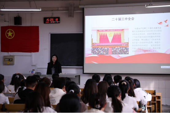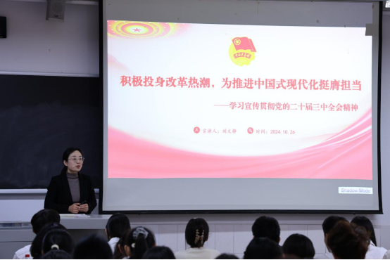 举办“学习贯彻党的二十届三中全会精神专题宣讲会”,本次活动由学院团委书记刘文静以及大学生宣讲团成员范晓慈、黄宝琪主讲,探花视频