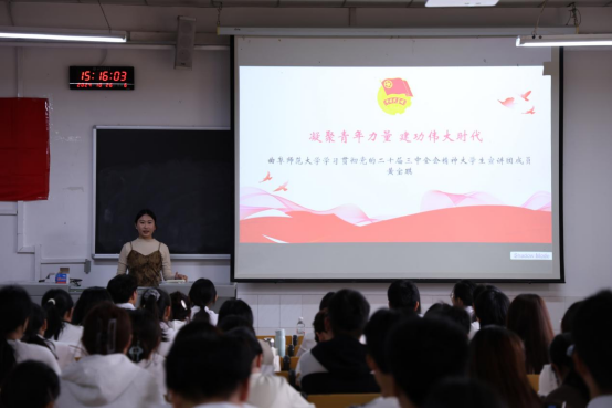 黄宝琪以《凝聚青年力量,建功伟大时代—做担当民族复兴大任的时代新人》为主题,深情讲述了历史上一代又一代青年接续奋斗的感人故事,分析了青年精神的丰富内涵,激励同学们担当时代重任,努力成为有理想、敢担当、能吃苦、肯奋斗的新时代好青年。