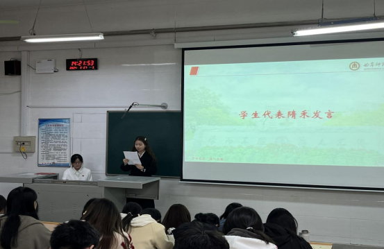 会议伊始,主持人讲述了志愿服务的内涵及其意义,同学们通过观看视频学习志愿服务的中国进程以及党的创新理论。随后,学生代表李睿讲述了参加志愿服务活动对于青年学生学习和实践的重要性意义,通过讲解志愿汇、志愿山东等平台的使用方式,指导同学们了解参与志愿活动的渠道方式。学生代表隋禾分享了个人参与志愿服务心得,强调规范培训和实践锻炼的重要性,号召更多青年学子投身于志愿服务。