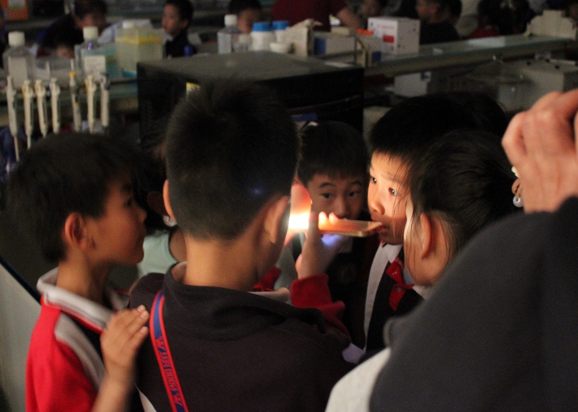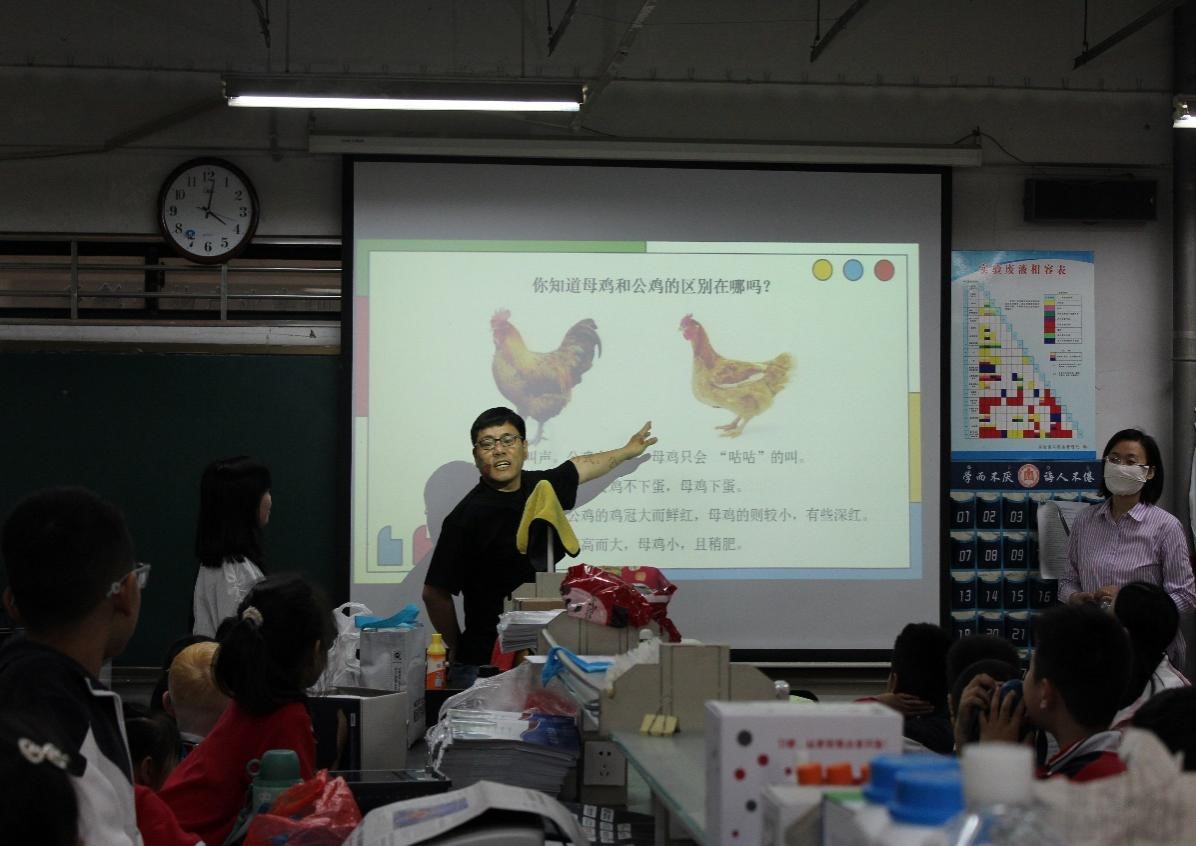 活动伊始,专业人员向一年级三班的全体学生讲解了孵化小鸡的理论知识,通过ppt进行孵化小鸡的全过程展示,图文并茂,简单易懂 。紧接着,由志愿者同学手持手机,用灯光照射正在孵化的鸡蛋底部,帮助小学生们进行鸡蛋气室的观察。最后,由志愿者为学生分发小鸡,用于辅助后续的观察。至此,本次活动圆满结束。