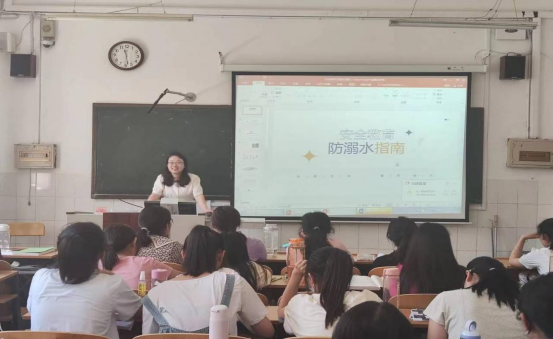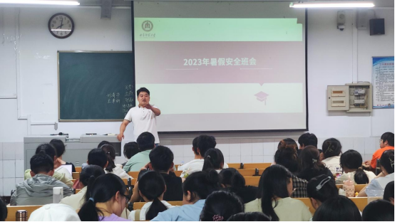 主题班会上,辅导员从交通安全、防溺水、人身安全、财产安全、防欺凌、防诈骗等方面对学生进行强化教育。