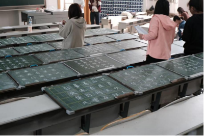 2023级、2022级、2021级全体同学。比赛开始前,由主持人强调比赛规则及注意事项,选手根据编号入座并在规定时间内完成指定的书写作品。比赛开始后,同学们聚精会神,钢笔字横撇竖捺精练传神,毛笔字起笔挥毫行云流水,粉笔字起顿行收挥洒自如,用精彩的现场表现向我们展示了自己卓越的书法功底,将中华文化的博大精深展现得淋漓尽致,得到了评委们的一致好评。
