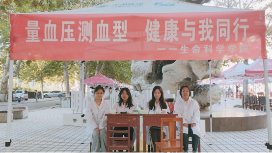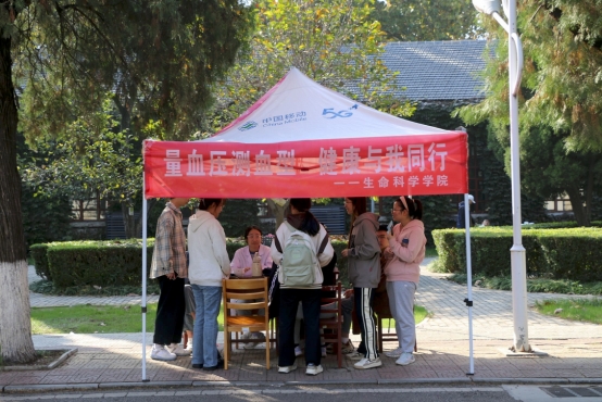 于大学生活动中心、生物楼前、校内八号公寓前举办“量血压测血型,健康与我同行”志愿活动,全校师生参与了此次活动,并吸引了教职工家属参与其中。
