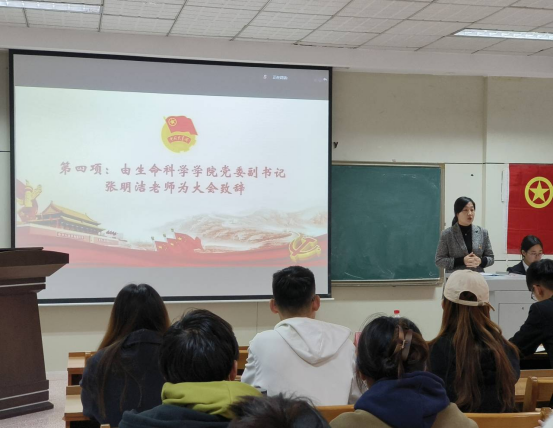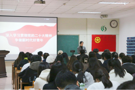 开班仪式结束后,张明洁为全体学员做本期青马培训第一讲。讲授以“深入学习贯彻党的二十大精神,争做新时代好青年”为题,从“学生骨干需要的核心素养”、“怎样培养核心素养”、“怎样开展学生的学习工作”三个方面为学员们展开讲授。她强调,当代青年大学生最需要的核心素养是政治素养,要努力成为具有坚定马克思主义信仰、德才兼备、全面发展的社会主义合格建设者和可靠接班人来接续党的光辉事业。同时,张书记从学科专业学习的角度,建议学生骨干将理论知识与专业知识相结合,从师范生能力提升、生态文明建设等方面入手,通过不断实践来提升个人专业本领,为今后在专业领域的更好发展奠定坚实基础。