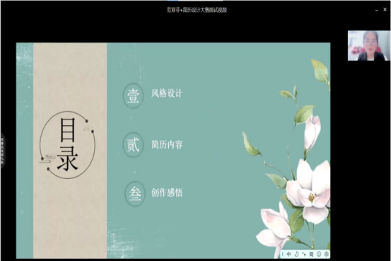 比赛伊始,由主持人介绍本次活动的规则。随后,参赛者们陆续进行线上答题活动,并进行线上视频简历介绍。本次活动虽于线上进行,但同学们的热情却丝毫未减。参赛者的简历设计精美,思路新奇,面试视频中,参赛选手表现的沉着冷静,声音洪亮,落落大方,极大地展现了青春之美,也展现了探花视频