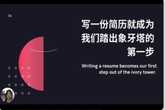 图为参赛选手介绍简历的重要性