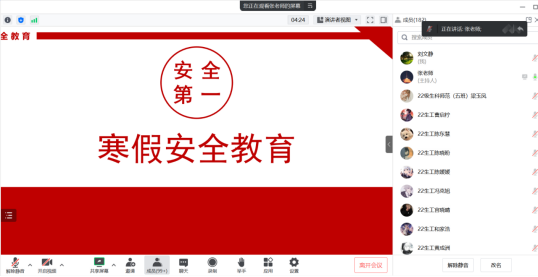 为做好2023年春季学期学生开学返校工作,提升学生的安全意识和自护自救能力,营造安全、和谐、稳定、健康的校园生活环境。2月7日,学院各班通过腾讯会议线上平台召开开学返校前的安全教育主题班会,加强安全教育,保证学生安全有序返校。