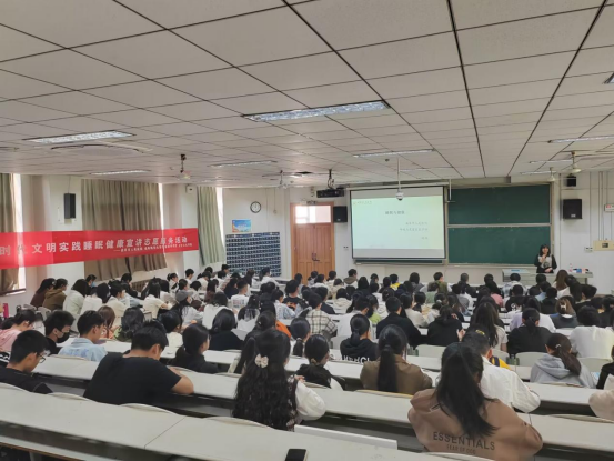 陈琳医生作了题为“睡眠与健康”讲座,主要从影响睡眠的因素、睡眠障碍给工作生活带来的危害和影响、情绪的调节等方面进行讲授,随后结合睡眠结构图重点分享了调节心理压力的几种方法,提出“上医治未病”,指出提高睡眠质量对身心健康的重要性,引导大家形成合理膳食、适量运动、平衡心理,养成健康的生活方式。讲座最后,陈琳医生与同学们积极互动,专业的讲解让同学们受益颇多。