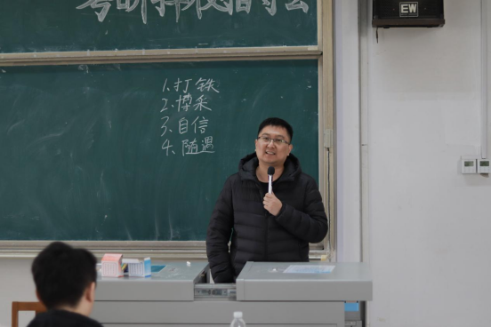 会上,宋宇昊老师就考研择校和备考数学、英语等部分与同学们进行了交流。一是正确认识考研,建议同学们结合自身情况选择最适合自己的院校。二是备考数学,主要从刷题规划、时间安排等方面开展细致的讲解。随后,张望龙老师根据自身的求学经历分别从择校、自信、调剂等方面进行了考研分享指导,引导同学们要好好学习专业知识,为考研打下坚实的基础。陈峻峰老师通过具体案例,对考研如何择校以及导师的选择进行了详细说明。在自由提问环节,同学们就考研复习进度,跨考专业的注意事项以及专硕学硕的区别等问题向老师提问,老师们耐心地为同学答疑解惑。现场同学认真倾听,积极踊跃,将此次指导会推向高潮。
