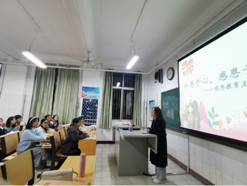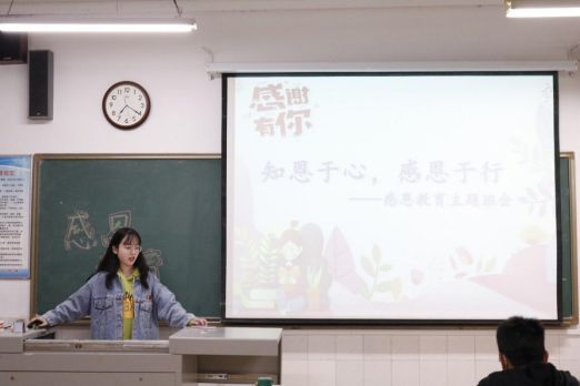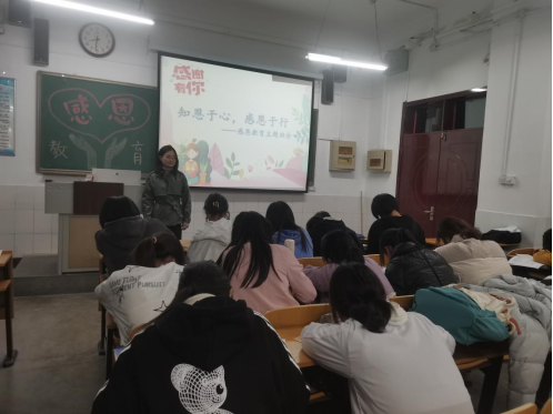 举办了“知恩于心,感恩于行”主题班会。2019级学生刘蓉、张梦凡、周梦瑶、张子涵担任主讲,2021级全体学生参加了本次活动。