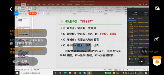 2019级在借助钉钉平台顺利开展考研指导讲座,邀请到邱念伟老师主讲,2019级全体同学参加了本次讲座。本次讲座由邱念伟教授担任主讲,2019级辅导员主持活动。