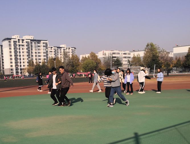为了丰富学生文化生活,展现新时代青年精神风貌,增强班级凝聚力,11月13日下午,2019级生物科学(师范M)班在西操场举行了以“擂暮,野鲭洄”为主题的童年游戏文体活动。通过参与童年游戏,同学们对班级的认同感和归属感大大增强。辅导员赵连栋老师和班级全体成员参与了此次活动。