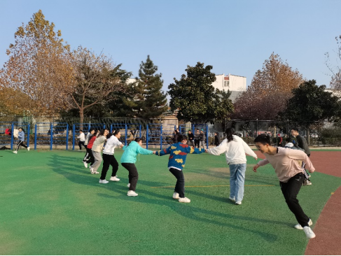 活动开始,文艺委员带领大家在西操场做热身活动,为接下来的运动做好充分准备,以防受伤。随后团支书向大家介绍了“一元五角”和“拉网捕鱼”的游戏规则,游戏过程中同学们积极参与,互帮互助,同心协作,操场上充满了欢声笑语。最后,组织者为游戏获胜的同学颁发小奖品并合影留念,在欢声笑语中活动圆满结束。