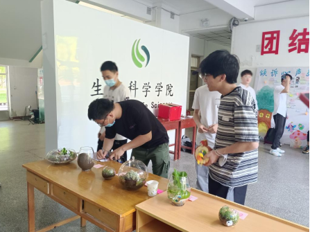 活动正式开始前,参赛选手通过策划书了解比赛的流程及规则。首先,提前购买基础物品并发放到选手们手中,参赛选手于5月24、25、26日自主完成生态瓶的制作,参赛选手们精巧设计,生态瓶的制作敢于大胆创新,将生态环保理念融于生态瓶中,既展示了“和谐、美丽”的生态文明观念也巩固了选手们生态系统专业知识,引起参与投票的同学们的赞扬与老师的称赞。最后,采用线上和线下综合投票的方式评选出了名次。此次活动圆满结束。