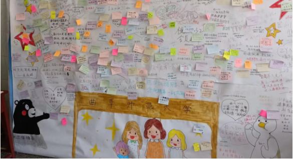 活动开始前,工作人员在生物楼一楼大厅设置了展板,并且准备了彩色便利贴和笔供同学们在展板上面写上想对朋友说的话。本次活动吸引了很多同学的参与,同学们纷纷写下对朋友想说的话,表达了对舍友的感谢以及对相聚缘分的珍惜。一张张五彩的便利贴纸张贴在传递爱的展板之上,有直接表白的“亲爱的室友我爱你们”,也有暖暖的“愿你前程似锦,未来可期”等话语。从这些饱含着浓浓爱意的小字条上,我们看到的是朋友之间那如亲人般的爱。