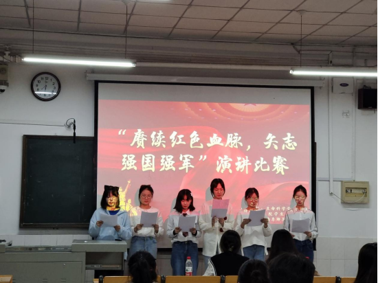 国防教育向更深层次发展,激发同学们关心国防、热爱国防、建设国防、保卫国防的政治热情,10月9日,”赓续红色血脉,矢志强国强军”大学生主题演讲大赛初赛于生物楼317教室举行。本次活动面向2022级全体同学,学院团委副书记、学生会主席团主要成员担任比赛评委。