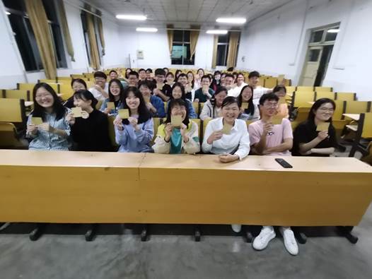 本次活动分为“党史故事我来讲”、“以史为镜,声临其境”之党史电影配音、“献礼百年,书写祝福”三个环节。团支书尚予欣首先致开幕词,呼吁班级同学积极参与党史学习,发扬五四精神,用知识文化力量铸牢中华民族共同体意识。班级五名入党积极分子分别就“红船精神”、“开国大典”、“脱贫攻坚”等主题依次分享党史故事,带领同学们走近建党百年中的重要历史事件,了解党史背后所蕴含的精神内涵和历史意义。随后进行了“以史为镜,声临其境”的党史电影配音活动,同学们现场对电影片段进行配音,在言行语调的模仿中,同学们一同回望历史,致敬先辈,感受着穿越时空的历史厚重与特殊情感。活动最后,同学们书写下心中对党的美好祝福,并合影留念。