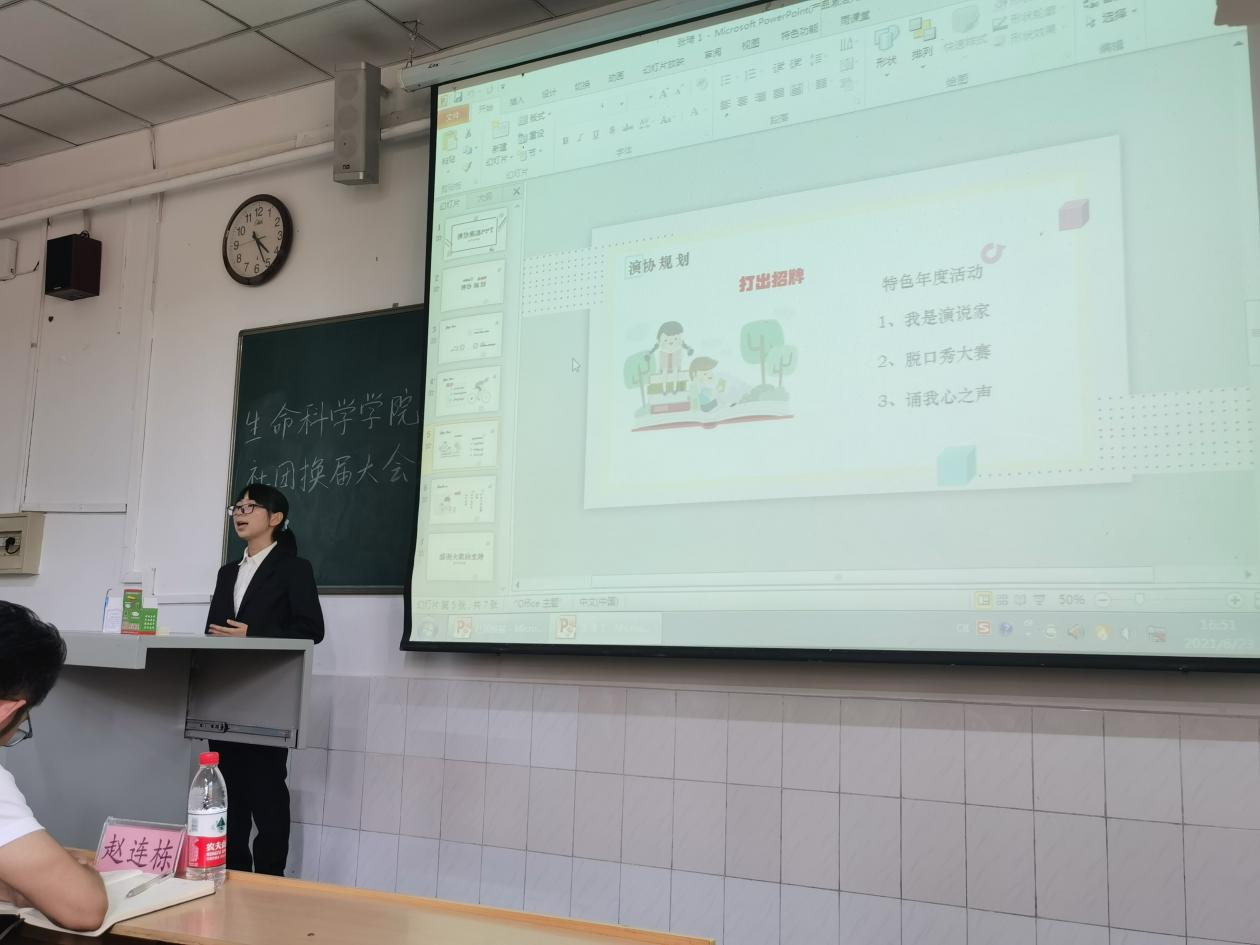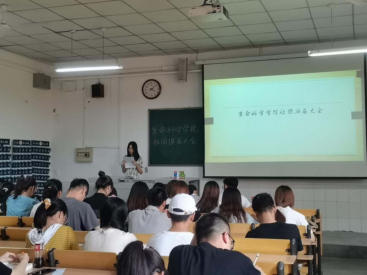 社团换届大会于生物楼332教室顺利举办。团委书记刘文静、辅导员杨珺斐、赵连栋以及其他社团指导教师出席了本次活动。