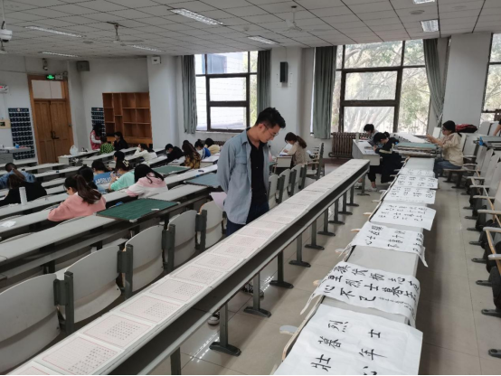 于综合楼201教室举办第四届“杏坛杯”三笔字大赛,本次活动面向2019级和2020级全体学生,2019级辅导员赵连栋老师,2020级辅导员袁晓涵老师担任评委老师。