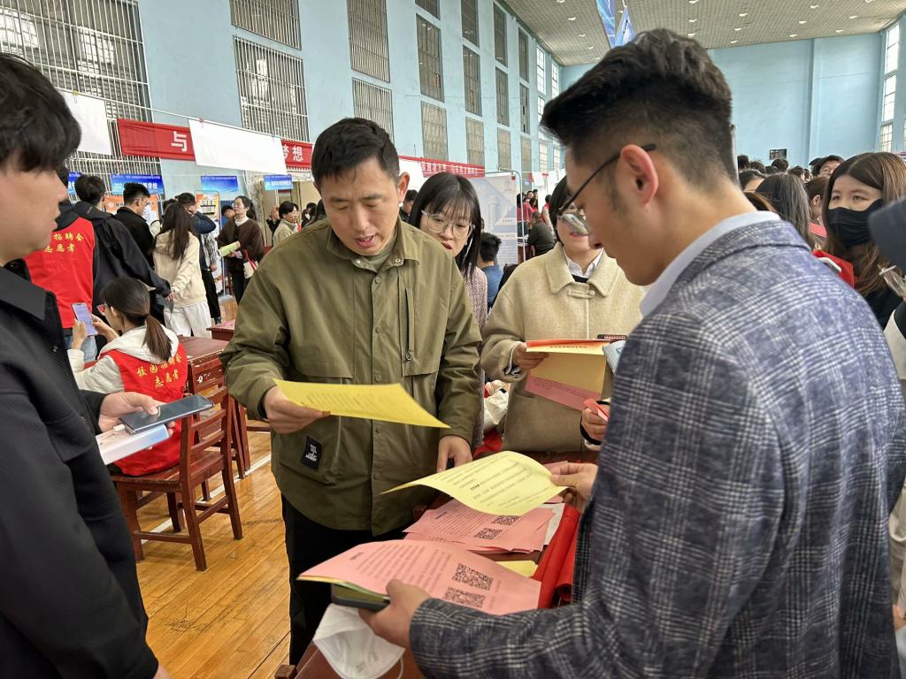 为了让同学们提前了解就业趋势,做好职业规划,4月12日,山东省2025年师范类高校毕业生就业双选会暨曲阜师大春季招聘会在体育科学学院球类馆举办,2023级全体生物科学师范专业同学参加了本次活动,辅导员赵连栋老师带领同学们参观并与同学们进行了深入交流。