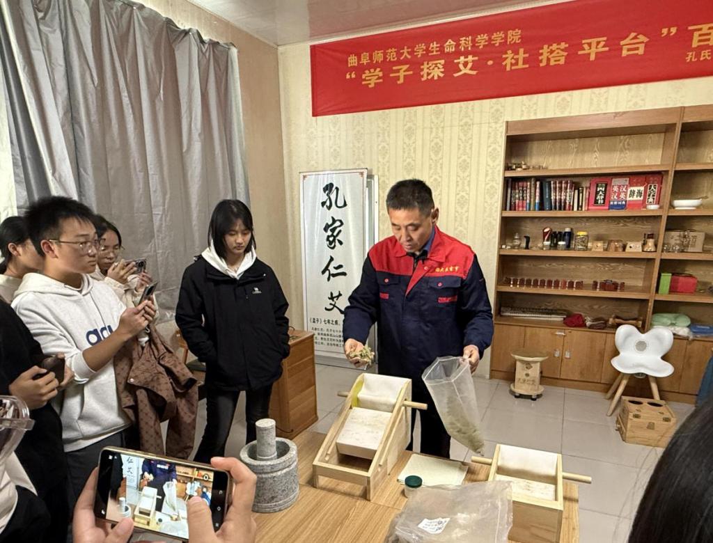 为响应团省委“百万大学生进社区”号召,11月16日,2025级生物科学(师范)三班团支部走进阙里社区参与“孔家仁艾”活动。此次学生以学习者身份,沉浸式探索艾草文化,掌握中医养生技能,让传统智慧滋养青春成长。