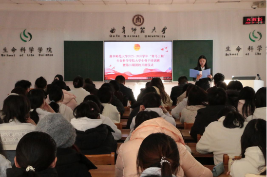在生物楼232教室隆重举行2025-2026学年“青马工程”大学生骨干培训班开班仪式。学院党委副书记王建龙、团委书记刘文静、辅导员代表以及本期培训班全体学员参加了活动。