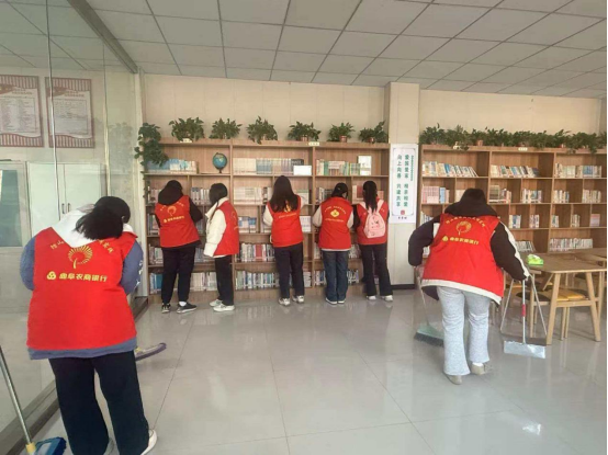 活动中,志愿者们分工明确、高效协作。规范图书管理,补写模糊脱落的分类标识,将千余册散置书籍按文学、科普、农技等类别归架对齐,同步登记破损图书待修。优化空间环境,用消毒湿巾擦拭阅览桌椅边角扶手,清扫地面并细致清理书架缝隙、窗台浮尘,为绿植浇水除尘。完善细节服务,整理归档散乱书签与借阅登记本,让阅读空间更显温馨。最终,图书馆面貌焕然一新——图书分类清晰、排架整齐,阅览区桌椅洁净、地面光亮,绿植生机盎然,原本杂乱的空间变为规整温馨的阅读阵地。