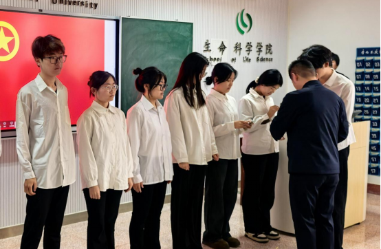 2025年下半年新团员入团仪式在生物楼232教室举行。学院党委副书记王建龙、团委副书记王鑫晗、施雨薇、2025年下半年新发展团员以及部分团员代表出席本次仪式。