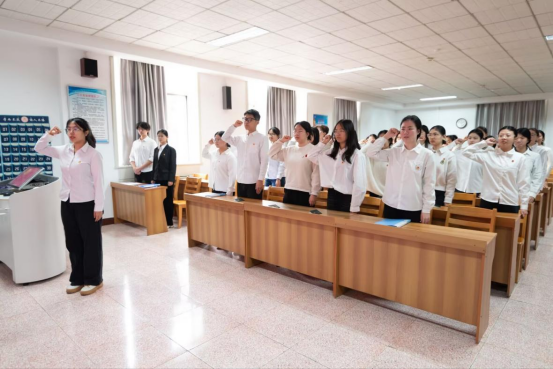 其次王鑫晗同志带领全体新团员面向团旗,庄严宣誓。誓言铿锵,展现了新时代青年听党话、跟党走的坚定决心。随后,团委副书记施雨薇宣读了《团章》中关于团员权利与义务的条款,勉励新团员勤奋学习、积极奉献。