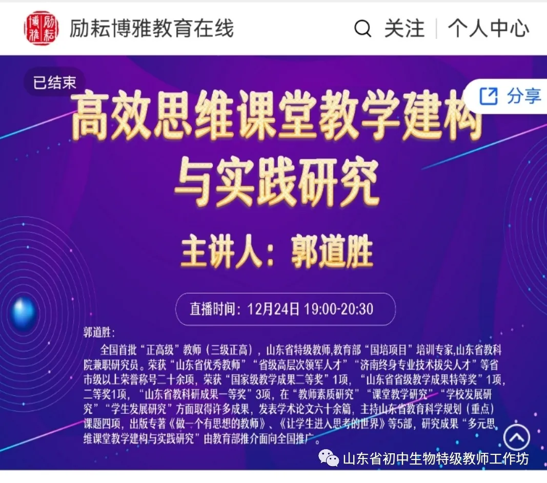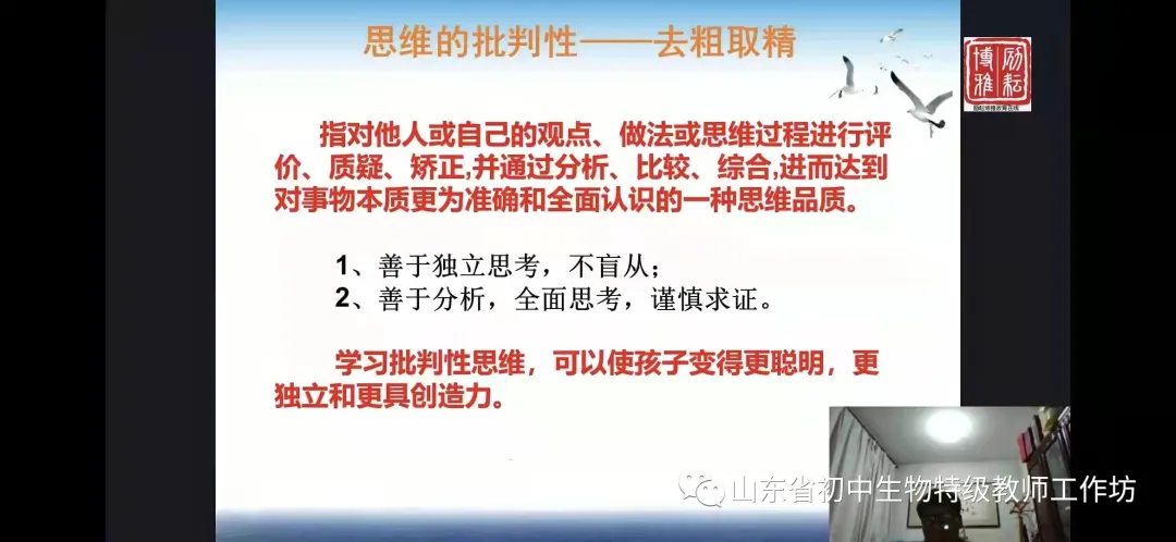 思维点亮课堂,交流促进发展 ——山东省初中生物特级教师工作坊举行“思维课堂”公益讲座